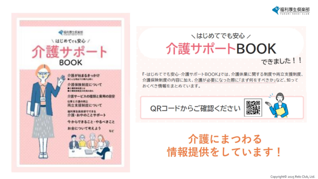 リロクラブの介護支援制度はもちろん、介護が必要になった際に知りたい一般的な制度や、仕事との両立についてまとめた資料もございます!