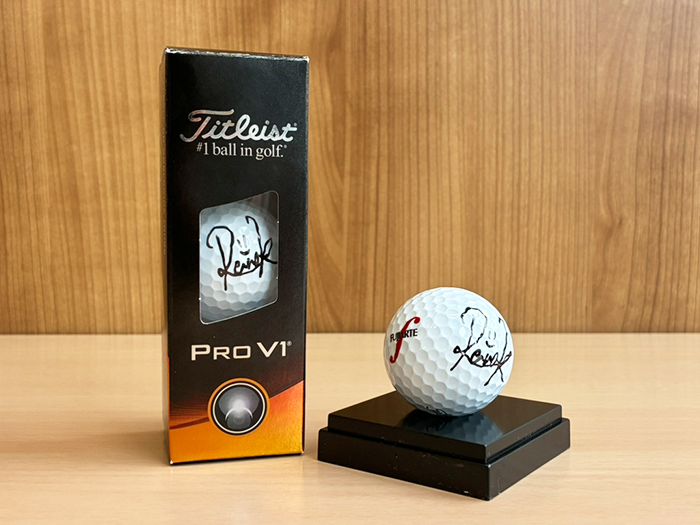 スポンサー契約締結時には、色紙・ゴルフボールにサインをいただきました!